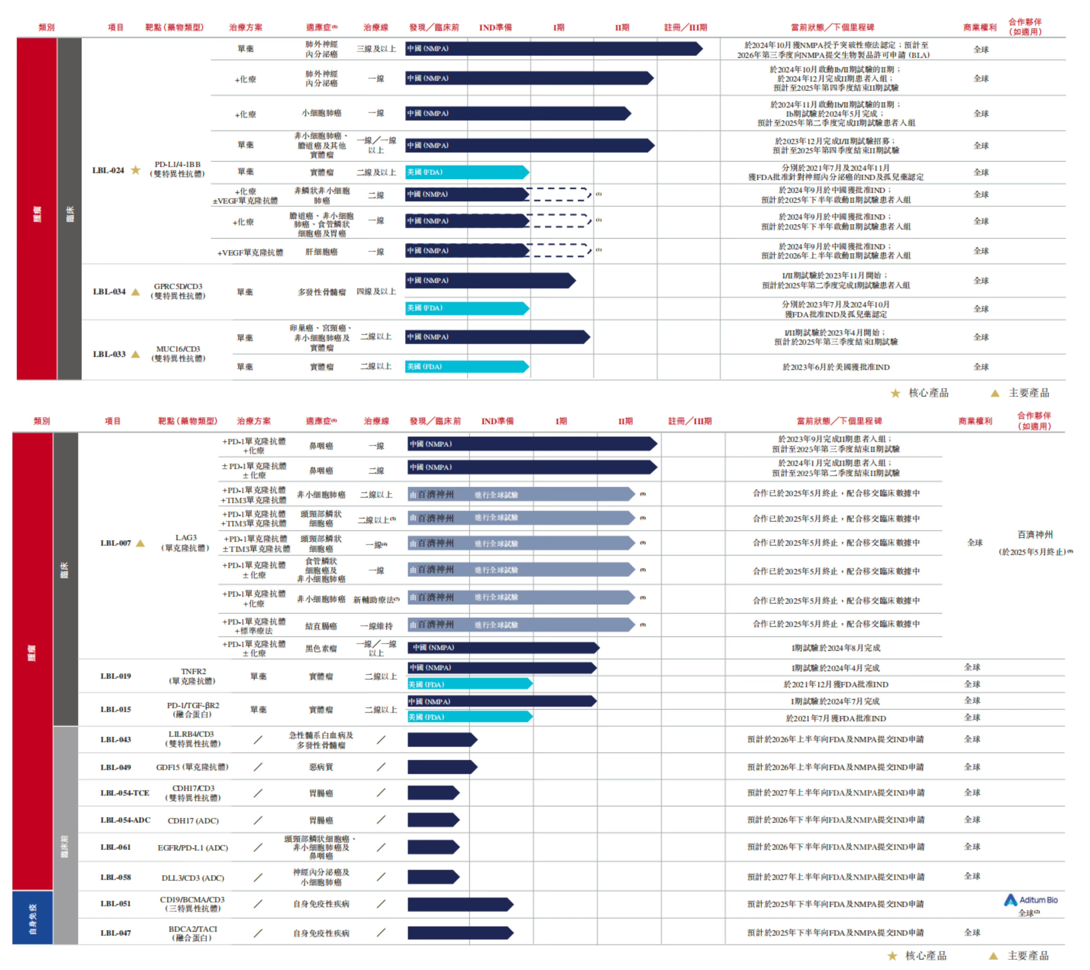 據(jù)招股書,維立志博目前共有14款藥物在研,6款已進入臨床試驗階段。其中既包括PD-1之后的下一代IO療法LAG3靶點LBL-007、PD-L1/4-1BB雙抗LBL-024,也有近兩年大熱的TCE和ADC分子產(chǎn)品,甚至還有“比較激進的TCE-ADC候選藥物分子”。