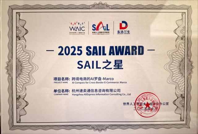 現(xiàn)場(chǎng)也有取得不錯(cuò)成績(jī)的企業(yè)。比如阿里國(guó)際憑借跨境電商AI解決方案Marco,成為本屆WAIC跨境電商領(lǐng)域唯一獲得2025世界人工智能大會(huì)SAIL(Super AI Leader)之星的AI技術(shù)代表。