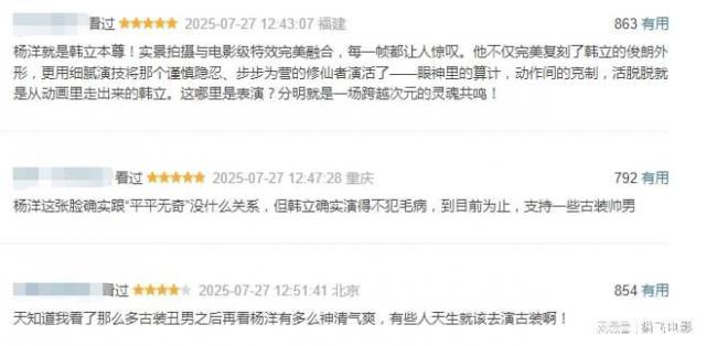 有網(wǎng)友盛贊楊洋就是韓立本尊,俊朗外形和細(xì)膩演技把“那個(gè)謹(jǐn)慎隱忍、步步為營的修仙者”演活了。