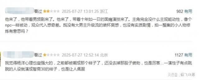 也有網(wǎng)友給出犀利批評(píng),一針見血地指出男主缺乏主觀能動(dòng)性,演員是“面癱式”演技。