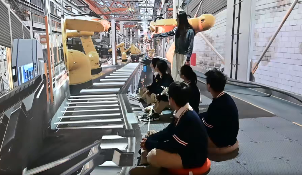 學(xué)生們?cè)谔摂M工廠“沉浸式”體驗(yàn)、“交互式”學(xué)習(xí)。