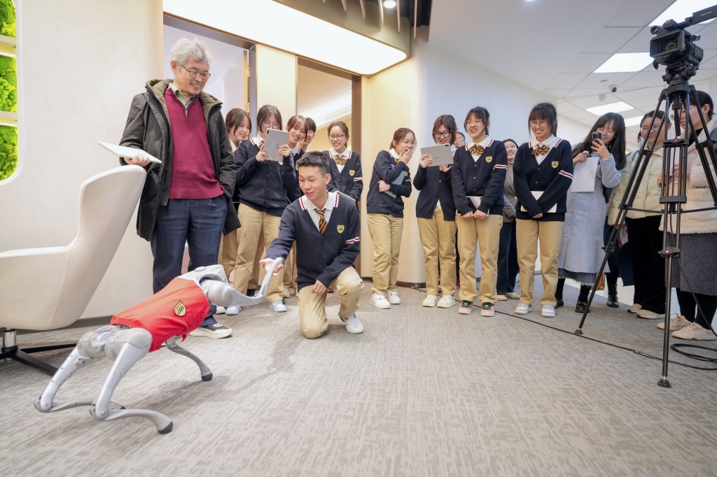學(xué)生們和AI工具“機(jī)器狗”互動(dòng)。