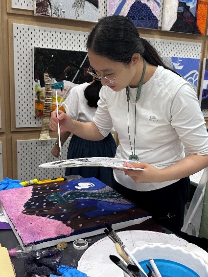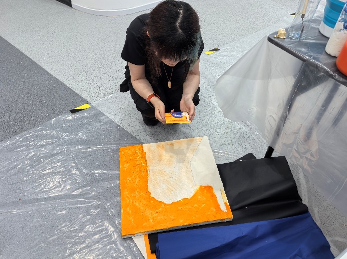 文學(xué)院的董菁同學(xué)回顧課程時(shí)說(shuō),作為中國(guó)語(yǔ)言文學(xué)系的學(xué)生,她有幸參與“綜合材料繪畫(huà)實(shí)踐”項(xiàng)目。通過(guò)跨學(xué)科的藝術(shù)實(shí)踐,她拓寬了知識(shí)眼界,也開(kāi)始思考文學(xué)與綜合材料繪畫(huà)的相通之處。綜合材料藝術(shù)有廣義的“語(yǔ)言”,注重畫(huà)面元素搭配的節(jié)奏和整體策劃,這與語(yǔ)言藝術(shù)中注重元素搭配、韻律協(xié)調(diào)產(chǎn)生的美感有相似之處。她感謝這次活動(dòng)提升了自己的藝術(shù)感受力,期待今后能參與更多相關(guān)活動(dòng),在學(xué)科交叉融合中提升綜合素養(yǎng)。