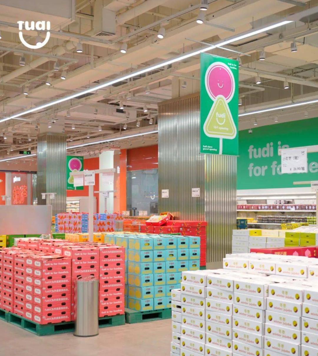 FUDI“超市美學(xué)”獨(dú)具特色。除了價(jià)格實(shí)惠和質(zhì)量穩(wěn)定,F(xiàn)UDI還注重滿足年輕人出片打卡的需求,是國內(nèi)最具INS風(fēng)的超市。在選址上,F(xiàn)UDI會(huì)選擇獨(dú)棟大型建筑,裝修風(fēng)格統(tǒng)一,非常適合在小紅書上分享打卡。