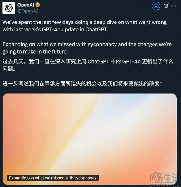OpenAI后續(xù)調(diào)查報(bào)告顯示,他們過(guò)于關(guān)注短期反饋(如用戶隨手的點(diǎn)贊/點(diǎn)踩),沒(méi)充分考慮用戶與ChatGPT的互動(dòng)隨時(shí)間演變,導(dǎo)致GPT - 4o傾向于做出更令人愉快的回應(yīng)。但這份報(bào)告未從根本上解釋為何改動(dòng)會(huì)讓ChatGPT“改頭換面”。