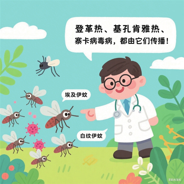 登革熱、基孔肯雅熱、寨卡病毒病這三種疾病均由蚊子傳播,主要傳播媒介是埃及伊蚊和白紋伊蚊,它們大多在熱帶和亞熱帶的潮濕環(huán)境中滋生,像積水容器、樹洞等地方。蚊子叮咬感染者后,攜帶病毒再去叮咬其他人,從而造成疾病傳播。