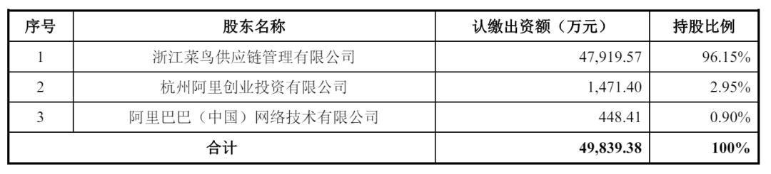 截至2025年3月31日,浙江菜鳥供應鏈管理有限公司持股25%,上海恭之潤實業(yè)發(fā)展有限公司持股16.1%,上海德殷投資控股有限公司持股7.76%;