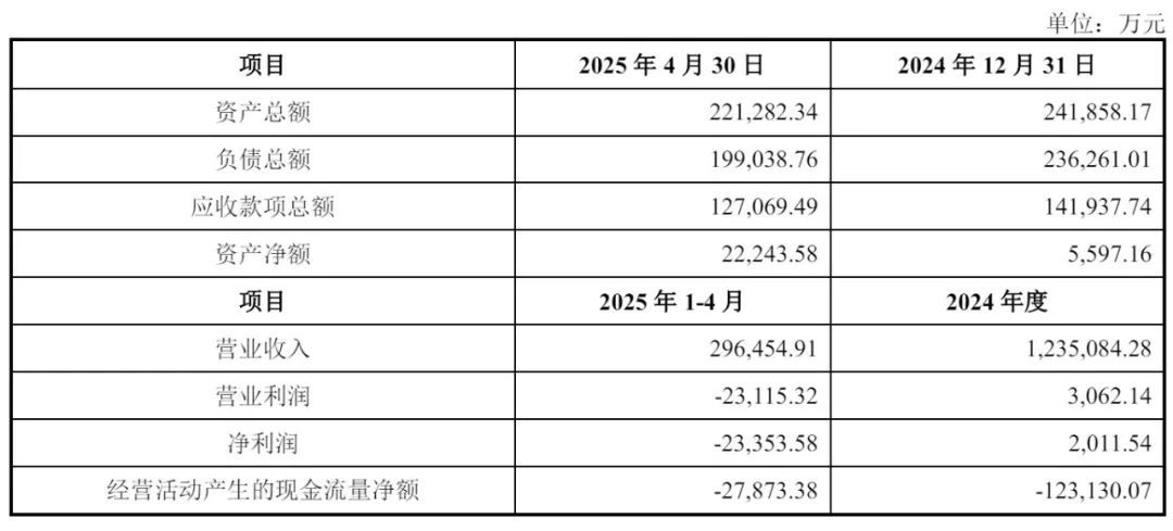 資料顯示,丹鳥物流2024年營收達123.51億元,凈利潤為2011.54萬元,不過經(jīng)營活動產(chǎn)生的現(xiàn)金流量凈流出12.31億元;2025年前4個月營收29.65億元,凈虧損2.33億元,經(jīng)營活動產(chǎn)生的現(xiàn)金流量凈流出2.79億元。