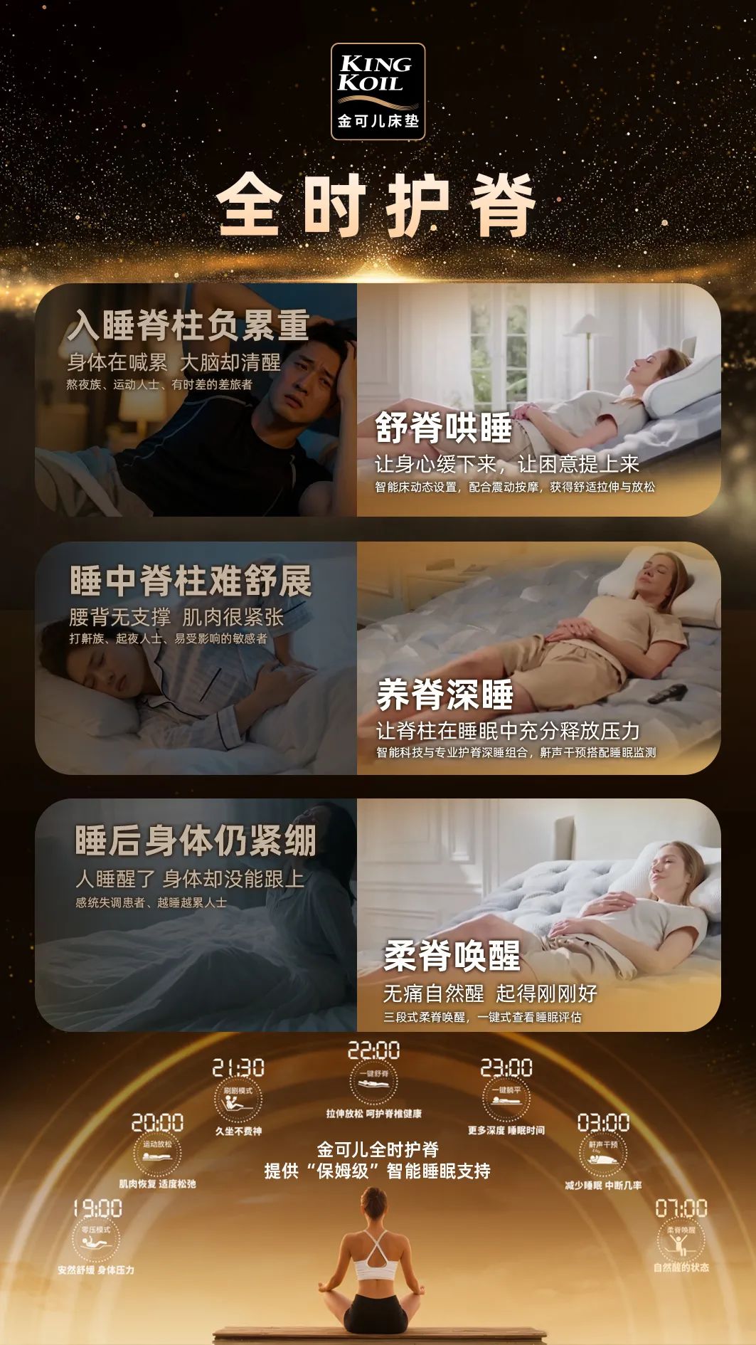 金可兒早在1967年就與美國脊骨神經(jīng)學(xué)專家聯(lián)合研發(fā),進(jìn)入中國后進(jìn)行本地化適配。2024年,其與國家體育總局運動醫(yī)學(xué)研究所啟動脊骨健康研究項目,確立“脊椎精準(zhǔn)承托”科技戰(zhàn)略。此次亮相的悅智型智能底床將護(hù)脊理念推至2.0階段,采用“中位睡眠理論”,全周期、全姿態(tài)、全場景照護(hù)脊椎。