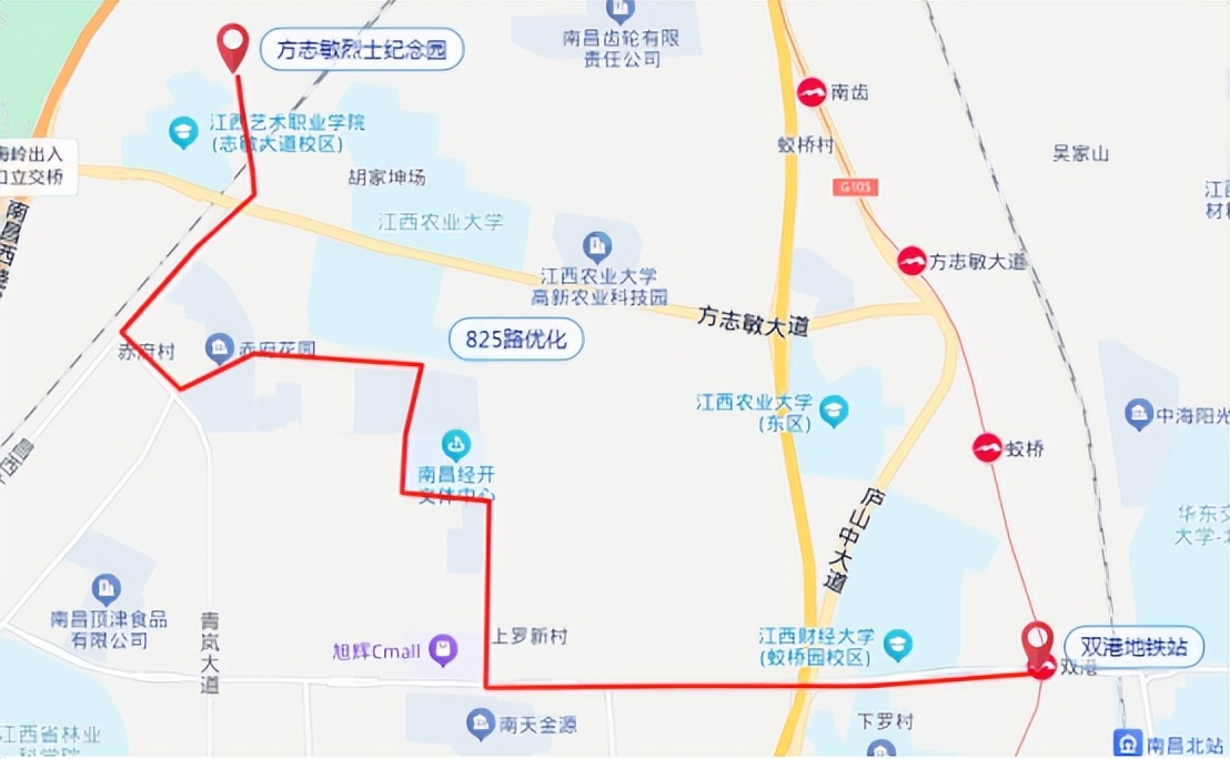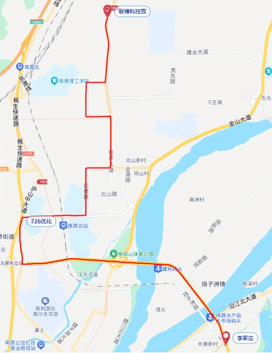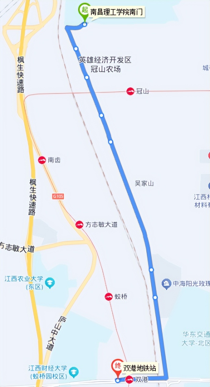 2.調(diào)整后線路走向:龍隱路—105國道—廬山北大道—英雄大道—英雄五路—昌北大道—經(jīng)開大道—方志敏大道—皇姑路—雙港東大街;