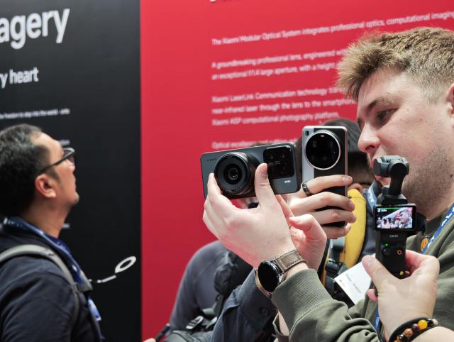 首先是外掛鏡頭。在2025年MWC上,小米推出模塊光學(xué)系統(tǒng),自帶M43傳感器、等效全畫幅35mm的一體式「鏡頭」,通過磁吸與小米15系列手機(jī)連接,用專有LaserLink技術(shù)傳輸數(shù)據(jù),結(jié)合傳感器和鏡頭素質(zhì)以及手機(jī)AI ISP算力拍照。