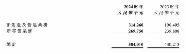 其中,IP創(chuàng)造及運(yùn)營(yíng)業(yè)務(wù)同比增長(zhǎng)約65.1%至3.14億元,在營(yíng)收占比中過半,首次年度反超新零售;新零售業(yè)務(wù)收入約2.7億元,同比增長(zhǎng)約12.5%。
