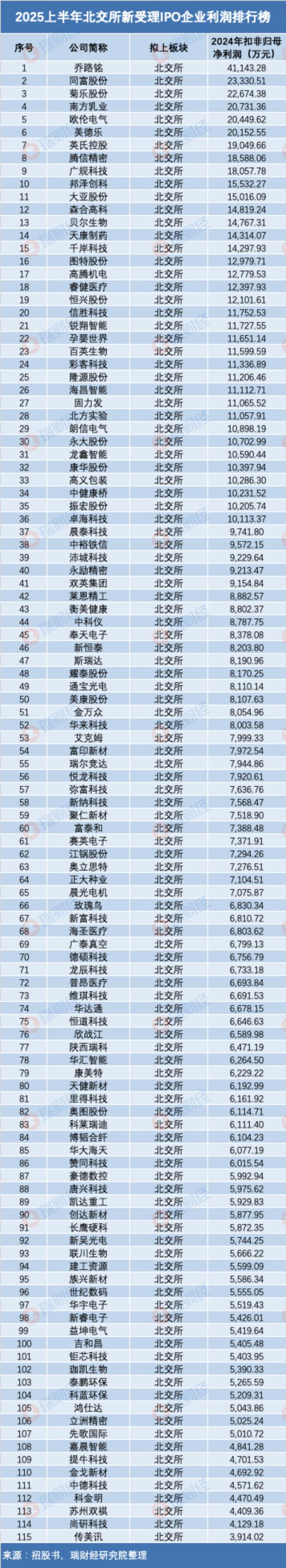 2025上半年北交所新受理IPO利潤排行:三成企業(yè)超億元,喬路銘4億奪冠