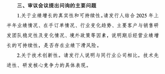 北交所要求泰凱英結(jié)合2025年上半年業(yè)績情況、在手訂單情況、行業(yè)變化趨勢、主要客戶與銷售研發(fā)團隊穩(wěn)定性及變化情況、境外政策等因素,說明期后經(jīng)營業(yè)績增長的可持續(xù)性,以及是否存在業(yè)績下滑風險等問題。