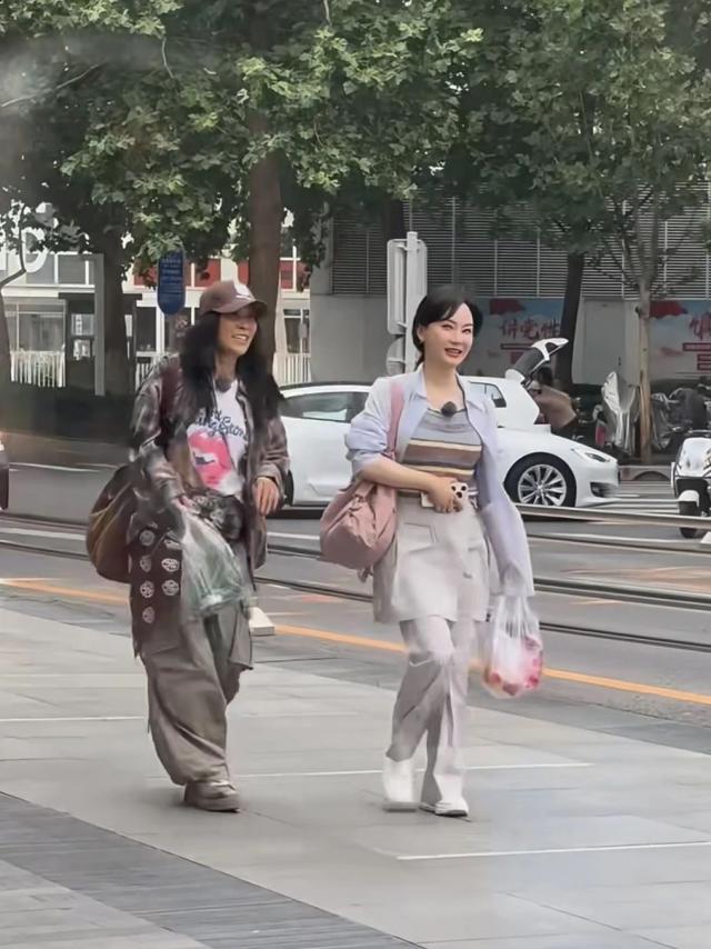 兩位“大姐大”的穿搭則更為隨性。陳數(shù)披著一件彩色背心和一件藍色襯衫,搭配 Low Classic 灰色寬松裹身裙褲亮相,手拎塑料袋,就像剛從菜市場買完水果回來。