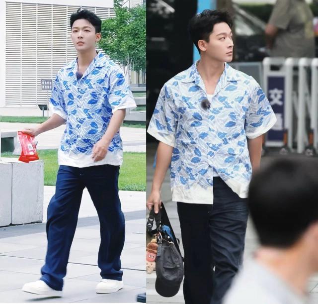 龔俊時而換上白襯衫和毛衣,時而換上蝴蝶印花短袖襯衫。