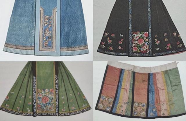 而清代風(fēng)格馬面裙裙襕裝飾更繁復(fù),褶子有稀疏有細(xì)密,褶子多的能達(dá)到百褶,且多打死褶,褶子之間還有鑲邊。在裙子紋飾上,馬面部分紋飾會豎向分布,并有類似蔽膝的前門裝飾“混搭”,較多采用繁復(fù)刺繡工藝。同時,還衍生出側(cè)裥式、襕干式、鳳尾式等形制類別。并且清代馬面裙通常不搭配交領(lǐng)上襖,冰箱貼上的交領(lǐng)上襖明顯是明代式樣。