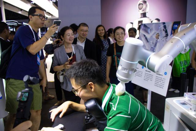 今年的WAIC展館宛如一個(gè)大型的“AI服務(wù)體驗(yàn)中心”。機(jī)器人不再是冰冷的機(jī)械臂,而是成為各行各業(yè)的“新員工”,各顯神通。