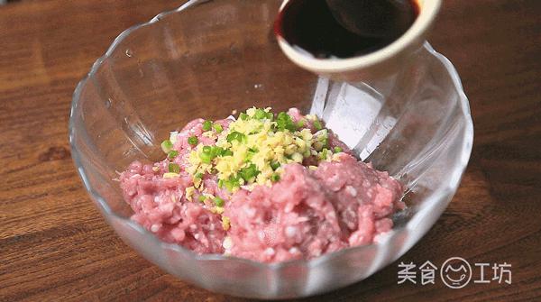2. 在豬肉餡里加入蔥姜末、生抽、蠔油、香油和少許白胡椒粉,攪拌均勻。