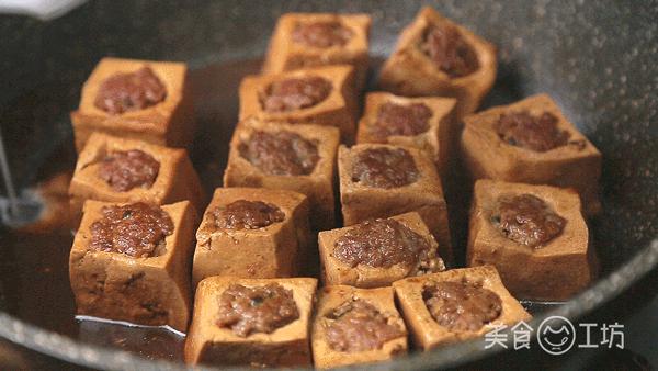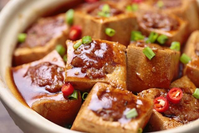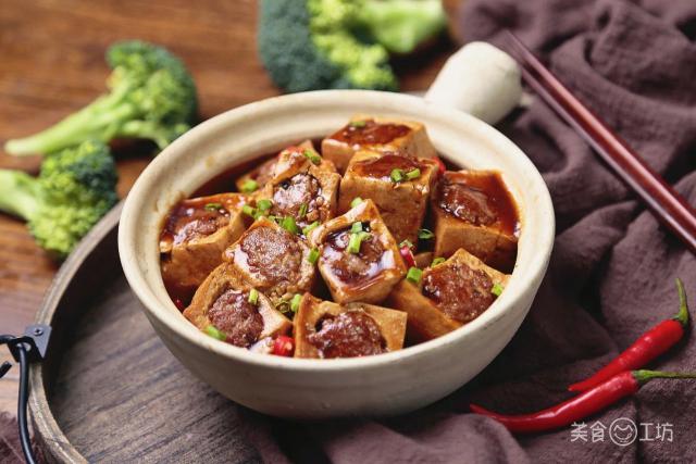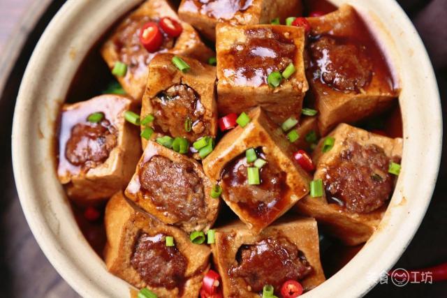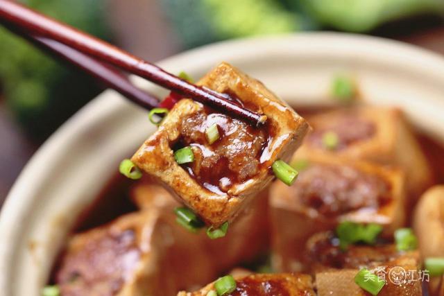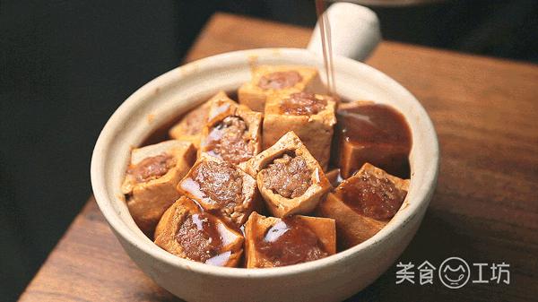還記得之前,在煎炸的豇豆里釀入肉餡,葷素搭配,造型和口感都很棒。今天美食君把容器換成了豆腐。經(jīng)過釀、煎、燉三道工序,豆腐鮮嫩多汁,搭配有顆粒感的肉餡,一口一塊,好吃得讓人不想說話。