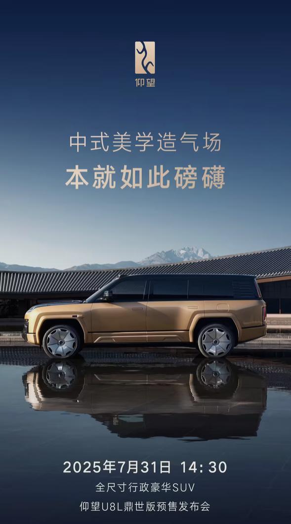 比亞迪仰望U8L鼎世版7月31日預(yù)售,盡顯豪華風(fēng)范