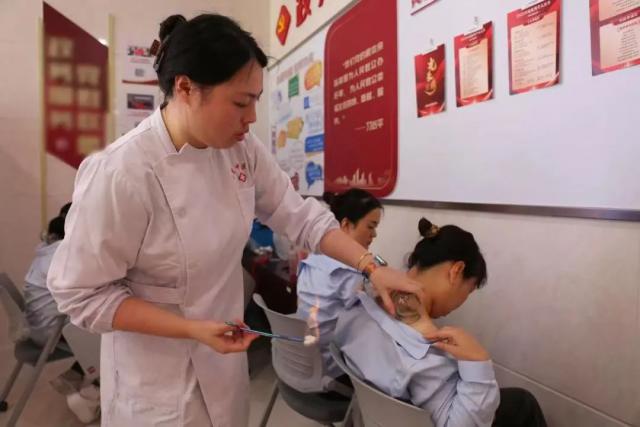 為深化區(qū)數(shù)據(jù)局“政務(wù)紅 · 數(shù)據(jù)藍(lán)”黨建品牌,依托“服務(wù)吧”黨群服務(wù)陣地,助力“健康奉賢”建設(shè)在黨群服務(wù)陣地上發(fā)揮行業(yè)作用,區(qū)數(shù)據(jù)局會同區(qū)衛(wèi)生健康委將醫(yī)療資源融入黨群服務(wù)陣地建設(shè),邀請中醫(yī)醫(yī)院醫(yī)護(hù)團(tuán)隊帶來中醫(yī)養(yǎng)生咨詢、拔火罐、三伏貼、中藥茶飲等服務(wù)。