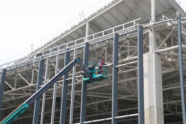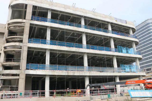馬路對面,包含宿舍和基礎(chǔ)配套設(shè)施的生活區(qū)已初見雛形,目前建設(shè)結(jié)構(gòu)已100%完成,外面的幕墻也完成了82%,預(yù)計(jì)明年2月份基本建成。