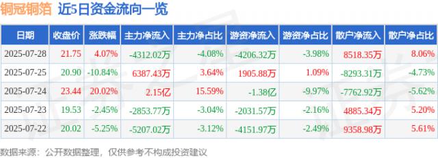 異動快報:銅冠銅箔(301217)7月28日午后觸及漲停板