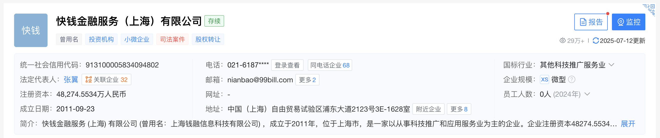 值得注意的是,當下快錢雖然估值為8億元,但據(jù)天眼查app顯示,企業(yè)人員規(guī)模為0,屬于微型企業(yè)。