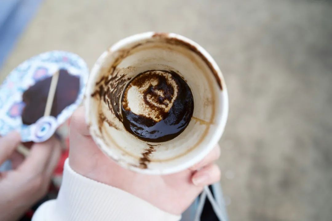 土耳其咖啡的一大特色便是不會(huì)濾渣,除非你想喝一口咖啡渣,否則不要一下喝到杯底。因?yàn)檫@些細(xì)膩的咖啡渣還有另一重使命——成為咖啡占卜的原料。