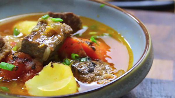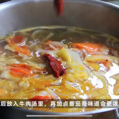 3、把所有食材放入牛肉湯里燉煮至軟爛,若加入一點番茄膏,味道會更濃郁。