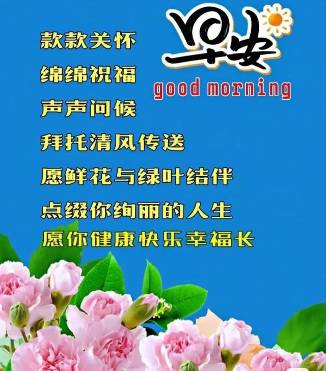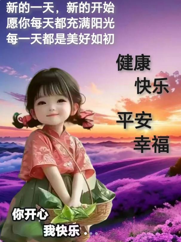 在這個(gè)美好的早晨,送你一份輕輕的祝福,愿你的一天充滿健康、好運(yùn)和幸福。讓這份祝福成為你新的起點(diǎn),開(kāi)啟一段美好的旅程。愿你今天的每一步都邁向幸福。早安!