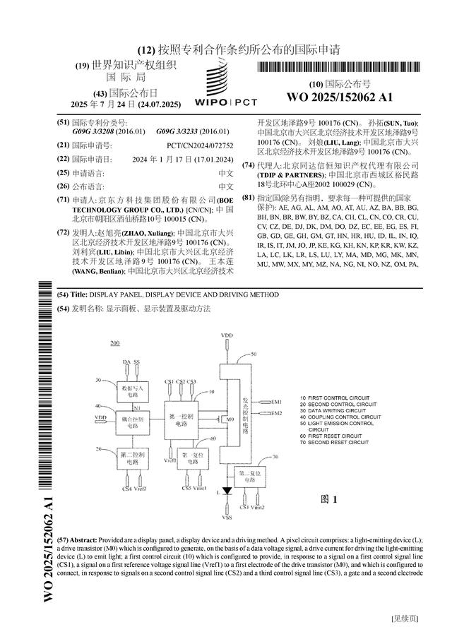 京東方A公布“顯示面板、顯示裝置及驅(qū)動方法”國際專利申請