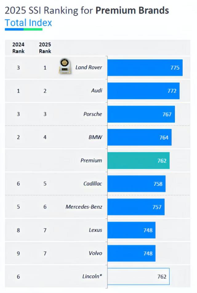 捷豹路虎率先察覺到了這一趨勢。J.D. Power | 君迪發(fā)布的2025中國銷售服務(wù)滿意度研究SM(SSI)顯示,路虎以775分(滿分1000分)的成績登頂豪華品牌榜首,創(chuàng)下該研究近五年豪華品牌的最高得分。