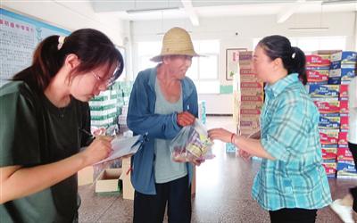 安置點救災物資發(fā)放秩序井然。 記者 錢進 攝
