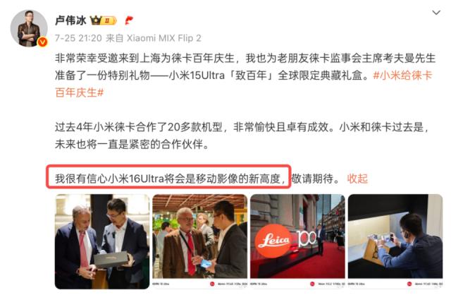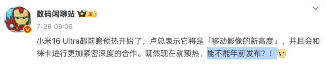 盧偉冰所說的,“小米 16 Ultra 將會(huì)是移動(dòng)影像的新高度”,也就有了依據(jù)。