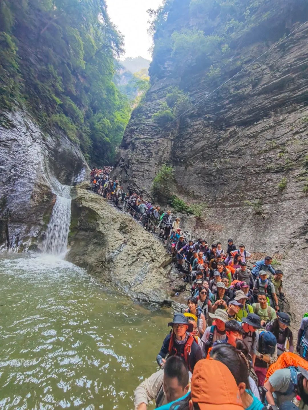 驢友在“一線天”峽谷附近排長隊。圖/受訪者提供