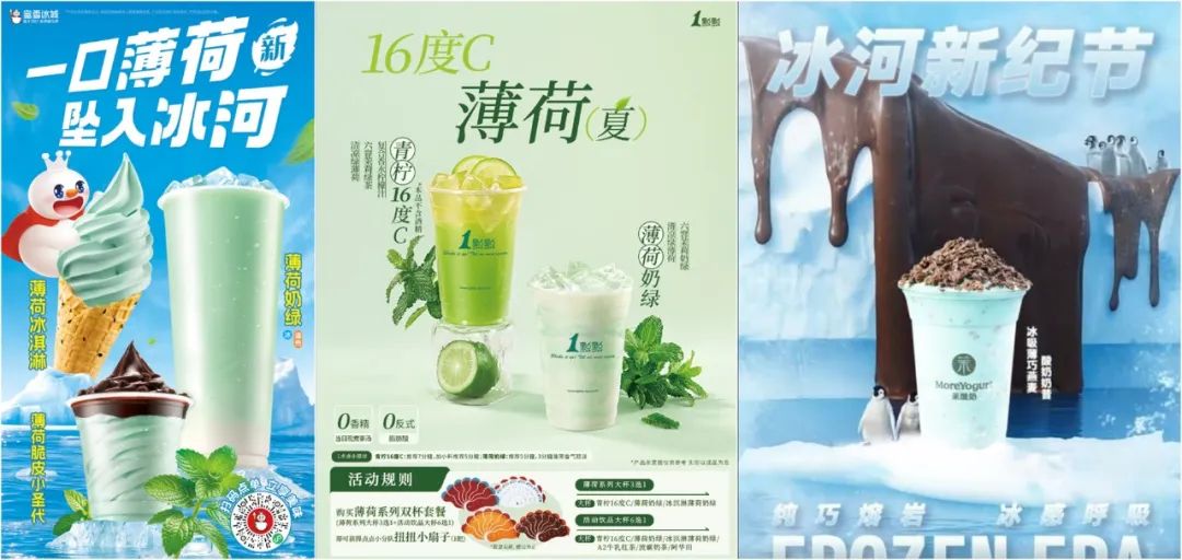 蜜雪冰城也推出了薄荷系列產(chǎn)品,包括薄荷奶綠、薄荷味咖啡、薄荷冰淇淋等,超高的性價比吸引了大量“薄荷控”。與此同時,1點點的“青檸16度C”與“薄荷奶綠”、茉酸奶的“冰吸薄巧燕麥酸奶奶昔”等新品也紛紛亮相。