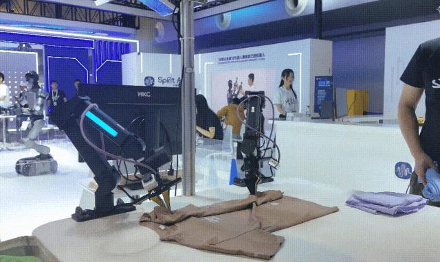 千尋智能的機械臂會疊衣服,不管衣服以什么姿勢扔過去,它都能疊成豆腐塊,就算衣服被拿走,它也會重新疊。