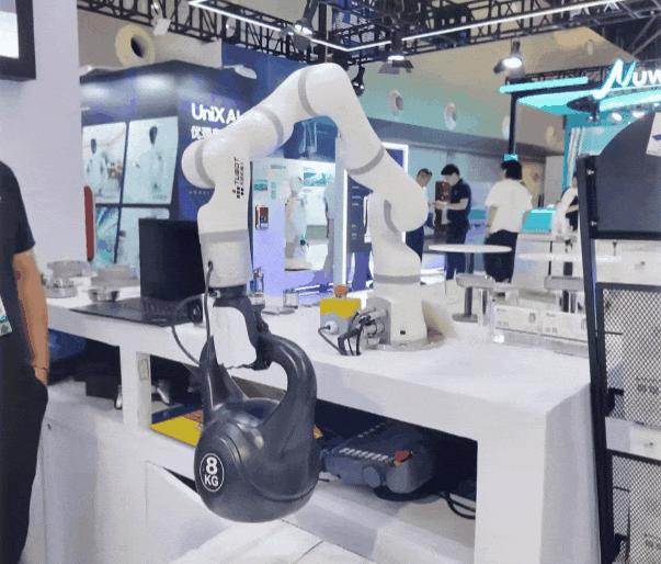 今年大會不僅有機器人,還有很多相關(guān)供應(yīng)鏈廠家。比如一個機械臂能舉起八公斤的東西。