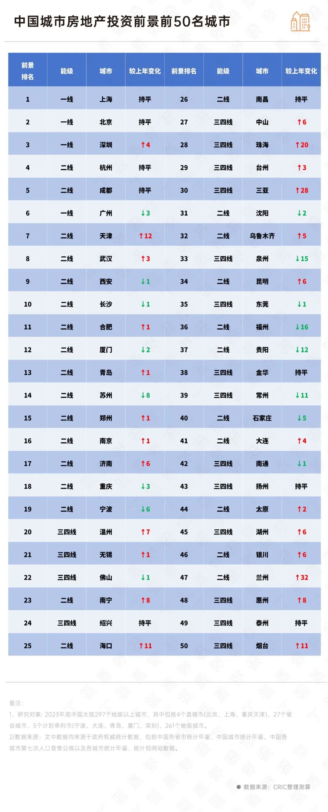 近日,CRIC對297個地級以上城市房地產(chǎn)市場進行了全面梳理,在最新發(fā)布的2025中國房地產(chǎn)投資前景排行榜中,房地產(chǎn)投資前景TOP50城市的排名出現(xiàn)了變動。