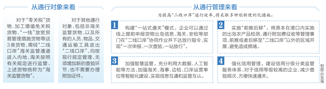 為提高“二線口岸”通行效率,將采取多種創(chuàng)新便利化措施: