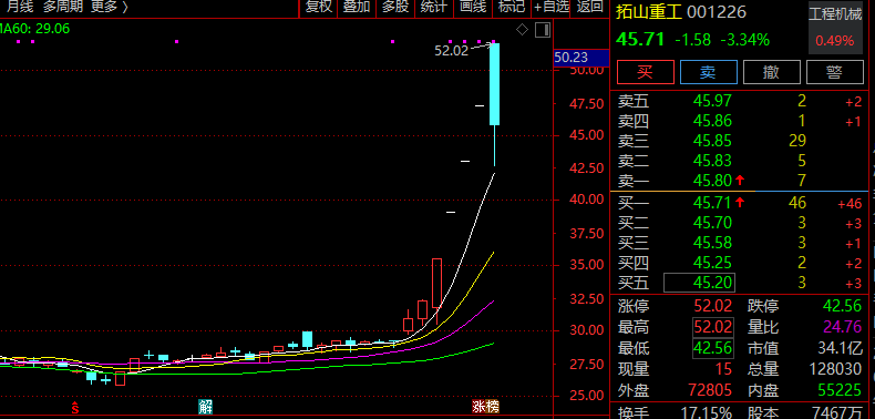 001226拓山重工4連板后盤中現(xiàn)“天地板”