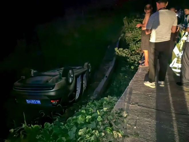 時(shí)間回溯到7月12日傍晚。張燦在石泉村轄區(qū)進(jìn)行日常巡邏時(shí),突然看到一輛汽車(chē)側(cè)翻在路邊的農(nóng)田里?!败?chē)子倒扣,駕駛員被困在里面!”情況危急,張燦立刻跳下3米深的農(nóng)田展開(kāi)救援。