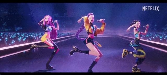 有時(shí)候刻板印象并非空穴來風(fēng),就連獵魔人題材也能和“韓流”結(jié)合,組成女團(tuán)以唱跳形式出道。6月底在網(wǎng)飛上線的動(dòng)畫電影《K - POP獵魔女團(tuán)》中,臺上光彩照人的頂級偶像,臺下?lián)u身一變成為保護(hù)世界的獵魔人,甚至敵對的惡魔都被包裝成男團(tuán)。