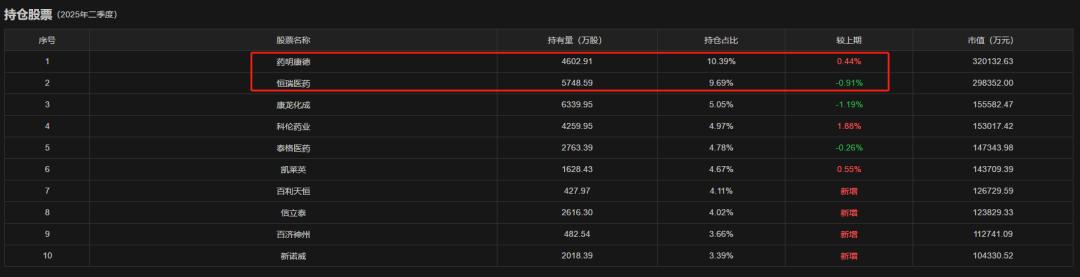 “醫(yī)藥女神”葛蘭和趙磊共同管理的中歐醫(yī)療健康混合基金,7月28日大漲3.06%。不過該基金最新持倉數(shù)據(jù)顯示,恒瑞醫(yī)藥較上期持倉比例下降了0.91%,藥明康德則上升了0.44%。此消彼長下,恒瑞醫(yī)藥退居為該基金的第二大重倉股。