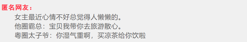 每當(dāng)她心情不好的時候,霸總不會帶她出去旅游散心,而是說:“你濕氣重啊,買涼茶給你喝啦!”