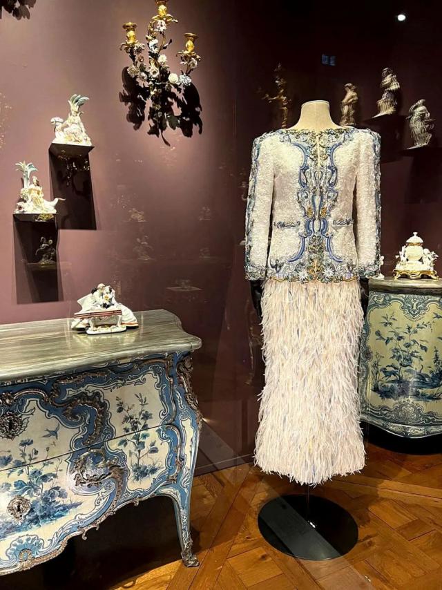 這場(chǎng)展覽更像是對(duì)“視覺文化譜系”的考察。從拜占庭與中世紀(jì)金銀寶器、象牙浮雕,到18世紀(jì)貴族肖像與洛可可沙龍,從文藝復(fù)興紋樣美學(xué)到19世紀(jì)拿破侖三世式的繁復(fù),設(shè)計(jì)師作品融入歷史語境,是藝術(shù)品的呼應(yīng)與再創(chuàng)作。