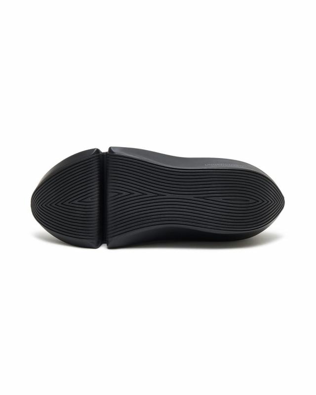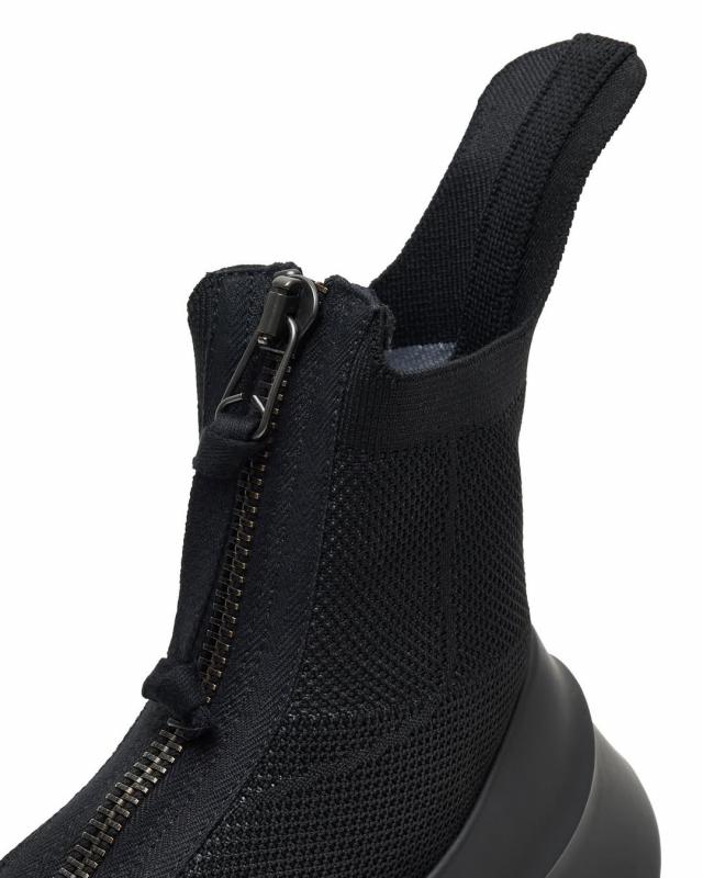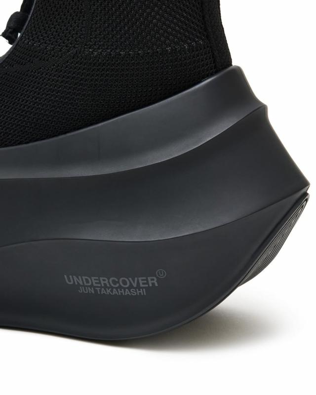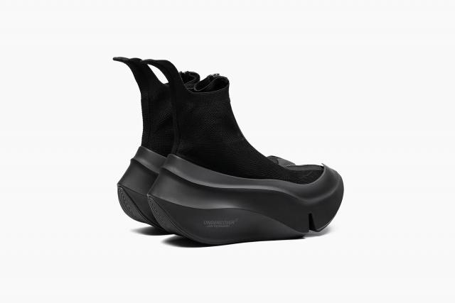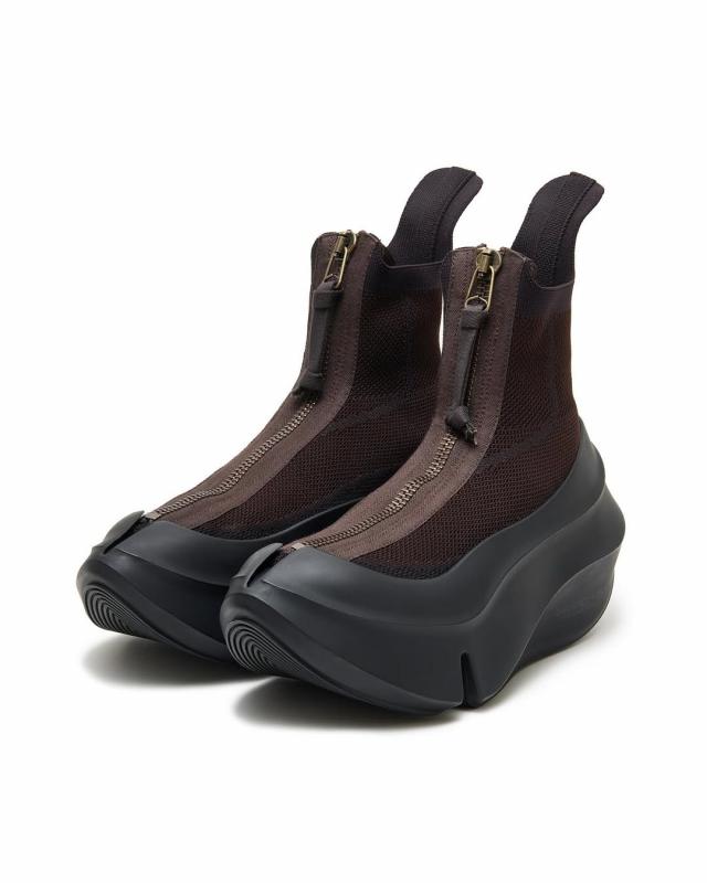 高橋盾的 UNDERCOVER 以 grounds 標(biāo)志性的 Orca 鞋型為基礎(chǔ),打造了一款科技感滿滿的拉鏈厚底鞋。這款鞋鞋底巨大,自帶雕塑般的曲線,搭配針織襪式鞋面,頂部還有一條長拉鏈。它提供了低調(diào)的全黑和深棕兩種配色,Orca 的品牌標(biāo)識(shí)也十分簡潔,就是在鞋底巧妙地印制了 UNDERCOVER 和 grounds 的 logo。對(duì)于像 grounds 這種專注于小眾市場(chǎng)的鞋履品牌來說,將 UNDERCOVER 的品牌標(biāo)志印在鞋面意義重大。雖然實(shí)現(xiàn)了跨界合作,還通過 UNDERCOVER 進(jìn)一步鞏固了品牌影響力,但 grounds 依舊是一個(gè)極具個(gè)性的球鞋品牌。據(jù)悉,Orca 現(xiàn)已發(fā)售。