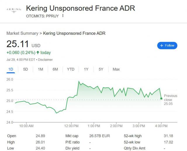 當(dāng)?shù)貢r(shí)間7月29日周二,總部位于法國的開云集團(tuán)公布了今年二季度和上半年財(cái)務(wù)數(shù)據(jù)。